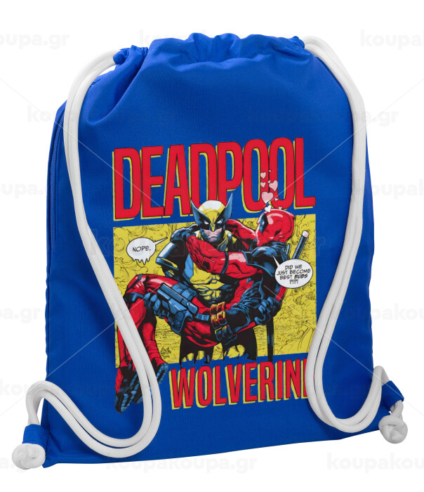 Superhero Deadpool Wolverine, Backpack pouch GYMBAG Blue, with pocket (40x48cm) & thick cords