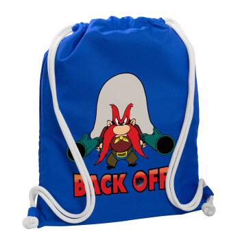 Yosemite Sam Back OFF, Backpack pouch GYMBAG Blue, with pocket (40x48cm) & thick cords