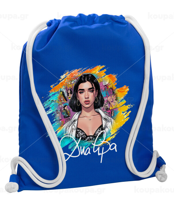Dua lipa, Backpack pouch GYMBAG Blue, with pocket (40x48cm) & thick cords