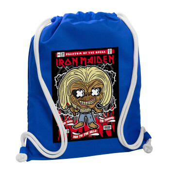 Iron maiden (eddie), Backpack pouch GYMBAG Blue, with pocket (40x48cm) & thick cords
