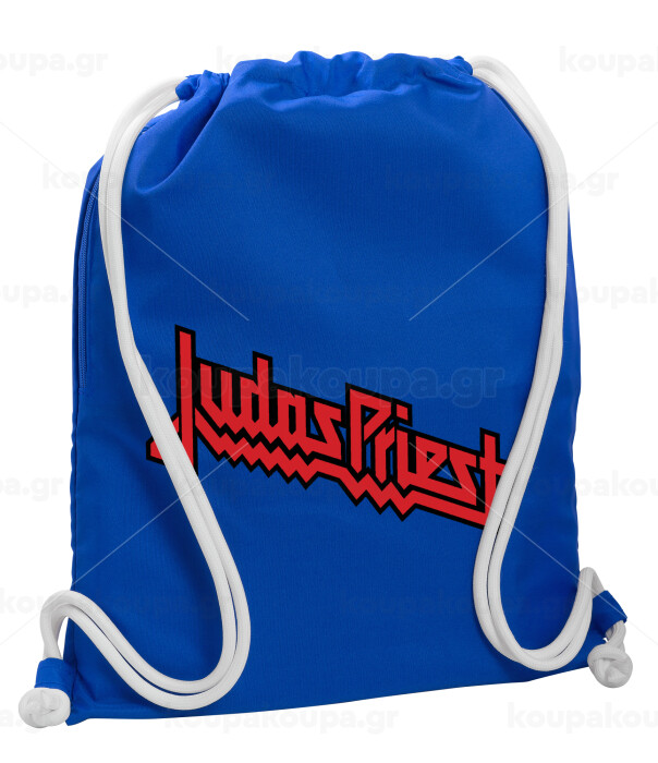 Judas Priest, Backpack pouch GYMBAG Blue, with pocket (40x48cm) & thick cords