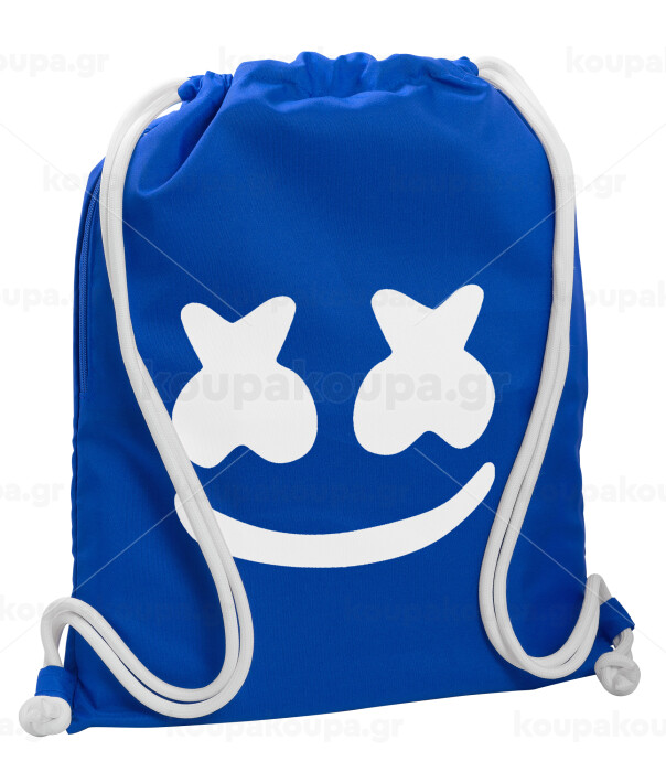 Marshmello, Backpack pouch GYMBAG Blue, with pocket (40x48cm) & thick cords