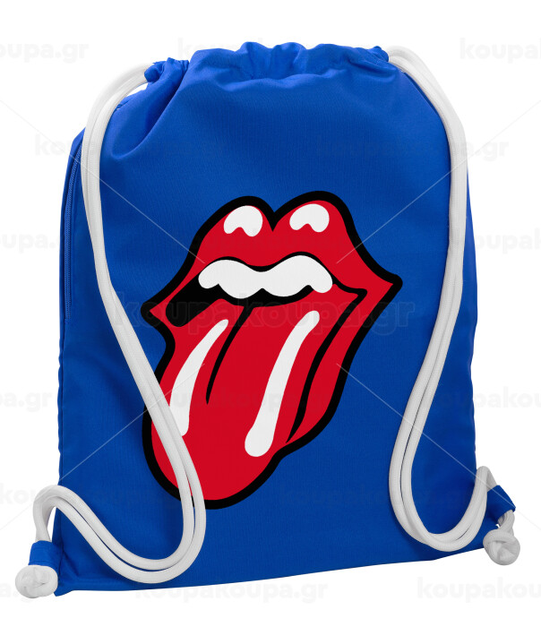 Rolling Stones Kiss, Backpack pouch GYMBAG Blue, with pocket (40x48cm) & thick cords