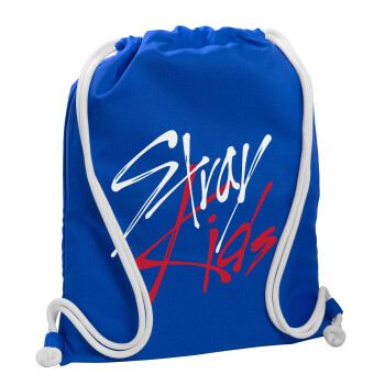 Stray Kids, Backpack pouch GYMBAG Blue, with pocket (40x48cm) & thick cords