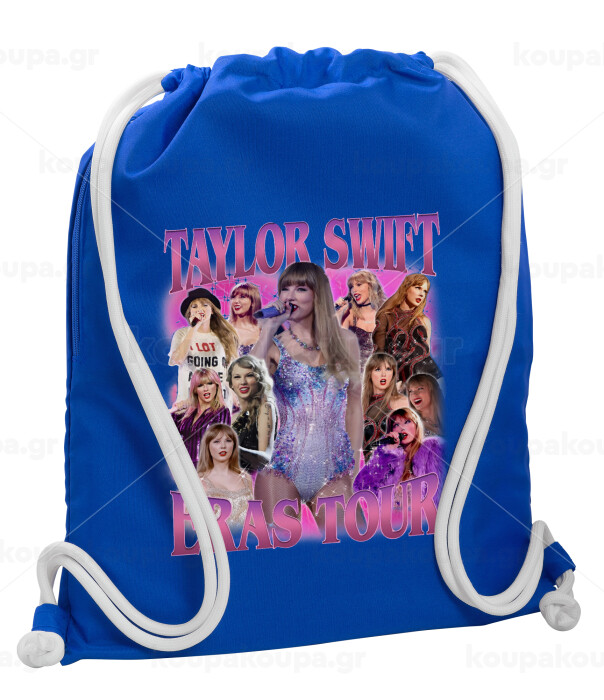 Taylor Swift, Backpack pouch GYMBAG Blue, with pocket (40x48cm) & thick cords
