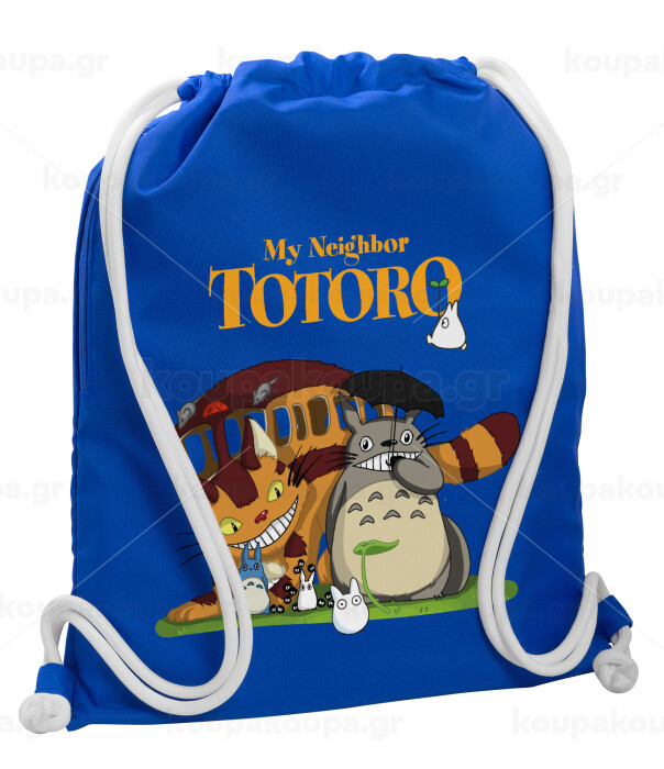Totoro and Cat, Backpack pouch GYMBAG Blue, with pocket (40x48cm) & thick cords