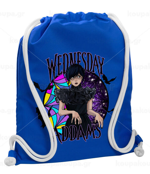 Wednesday Jenna Ortega, Backpack pouch GYMBAG Blue, with pocket (40x48cm) & thick cords