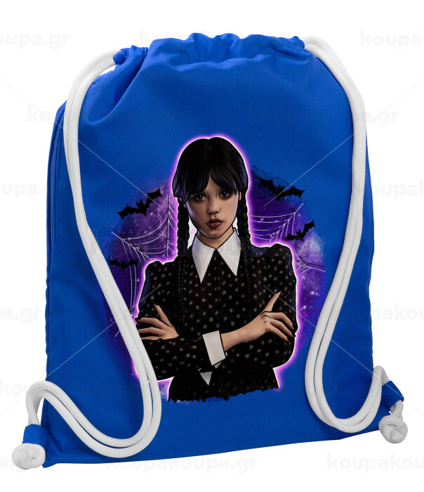 Wednesday moonlight, Backpack pouch GYMBAG Blue, with pocket (40x48cm) & thick cords