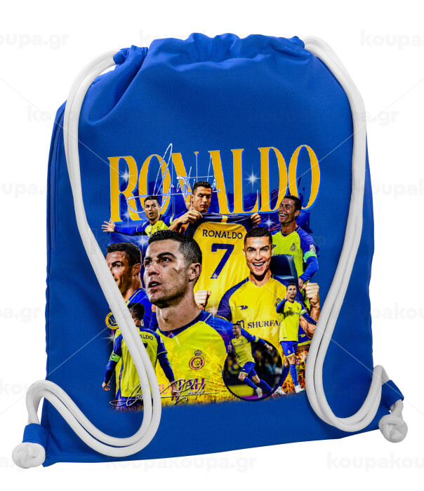 Cristiano Ronaldo Al Nassr, Backpack pouch GYMBAG Blue, with pocket (40x48cm) & thick cords