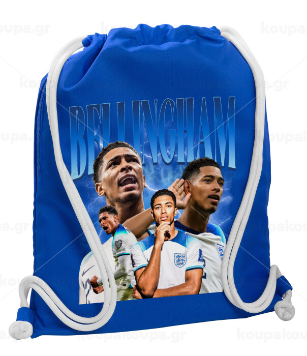 Jude Bellingham, Backpack pouch GYMBAG Blue, with pocket (40x48cm) & thick cords