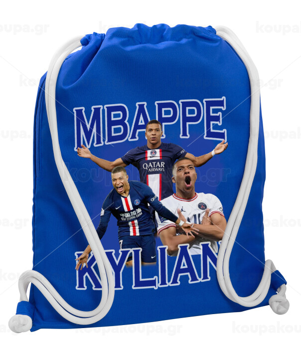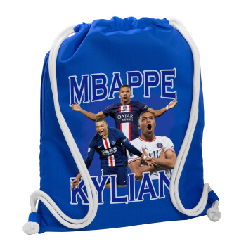 Kylian Mbappé, Backpack pouch GYMBAG Blue, with pocket (40x48cm) & thick cords