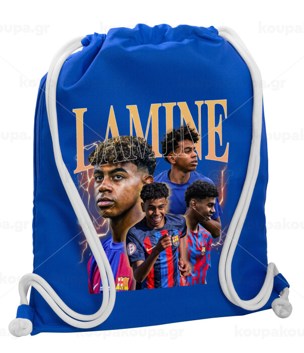 lamine yamal FCB, Backpack pouch GYMBAG Blue, with pocket (40x48cm) & thick cords