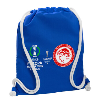 Olympiacos UEFA Europa Conference League Champion 2023/24, Backpack pouch GYMBAG Blue, with pocket (40x48cm) & thick cords