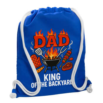 DAD "King of the Backyard", Backpack pouch GYMBAG Blue, with pocket (40x48cm) & thick cords