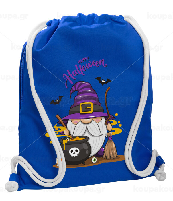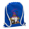 Happy Halloween (Χαλοουίν), Backpack pouch GYMBAG Blue, with pocket (40x48cm) & thick cords