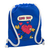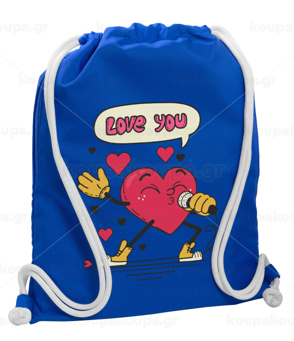 LOVE YOU SINGER!!!, Backpack pouch GYMBAG Blue, with pocket (40x48cm) & thick cords