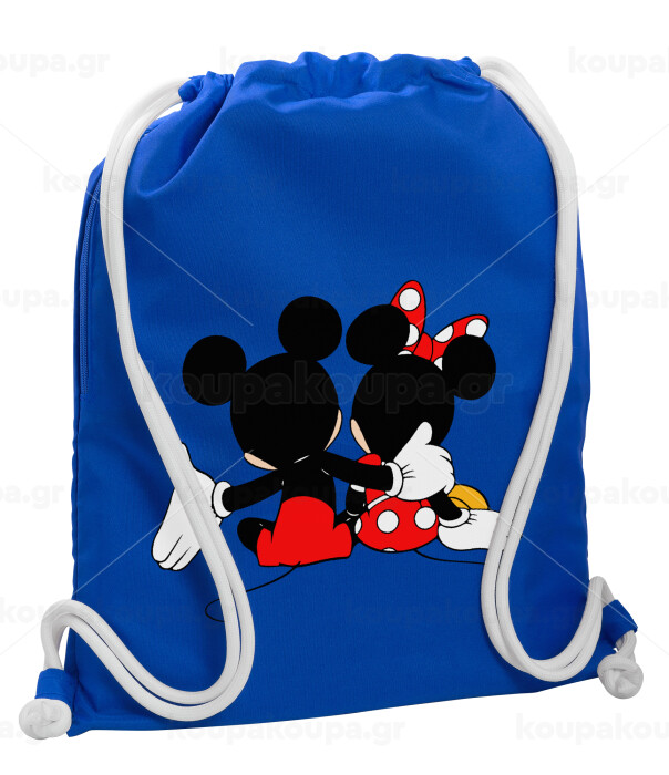 mickey and minnie hags, Backpack pouch GYMBAG Blue, with pocket (40x48cm) & thick cords