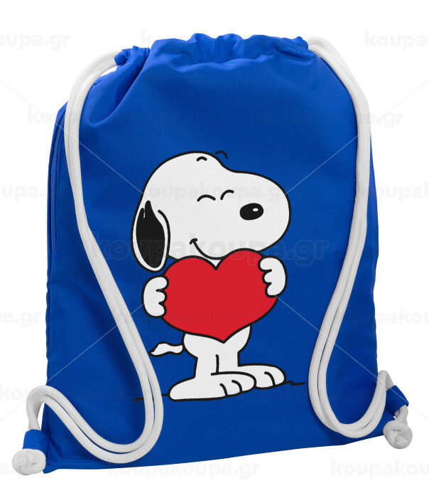 Snoopy takemy heart, Backpack pouch GYMBAG Blue, with pocket (40x48cm) & thick cords