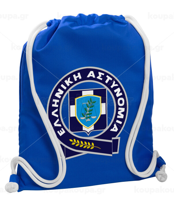 Ελληνική Αστυνομία, Backpack pouch GYMBAG Blue, with pocket (40x48cm) & thick cords