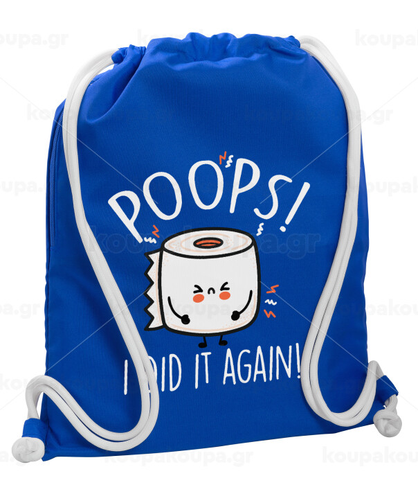 Poops!...I Did It Again, Backpack pouch GYMBAG Blue, with pocket (40x48cm) & thick cords