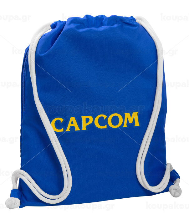 Capcom, Backpack pouch GYMBAG Blue, with pocket (40x48cm) & thick cords