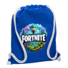 Fortnite land, Backpack pouch GYMBAG Blue, with pocket (40x48cm) & thick cords
