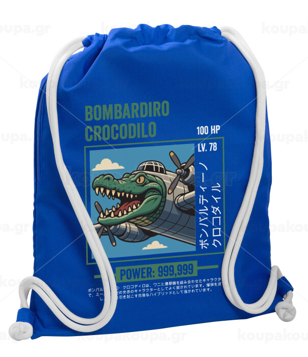 Bombardiro Crocodilo, Backpack pouch GYMBAG Blue, with pocket (40x48cm) & thick cords