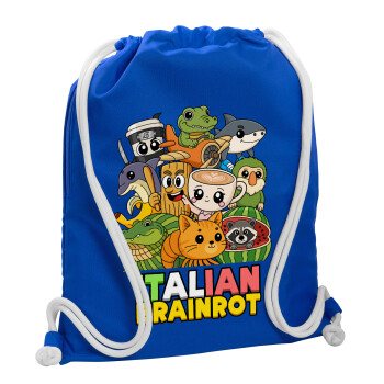 Italian Brainrot friends, Backpack pouch GYMBAG Blue, with pocket (40x48cm) & thick cords