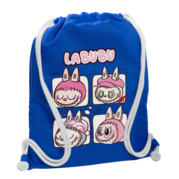 Labubu pink, Backpack pouch GYMBAG Blue, with pocket (40x48cm) & thick cords