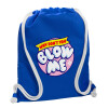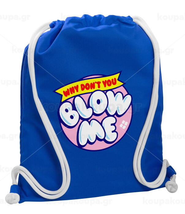 Why Don't You Blow Me Funny, Backpack pouch GYMBAG Blue, with pocket (40x48cm) & thick cords