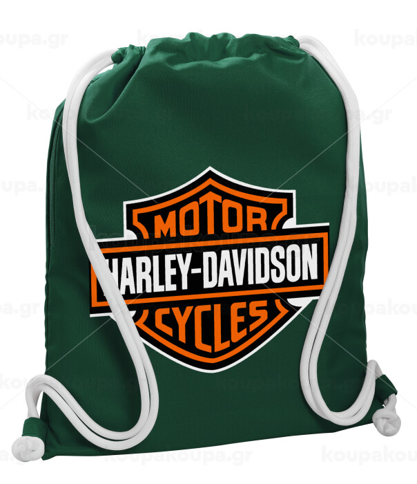 Motor Harley Davidson, Backpack pouch GYMBAG BOTTLE GREEN, with pocket (40x48cm) & thick white cords