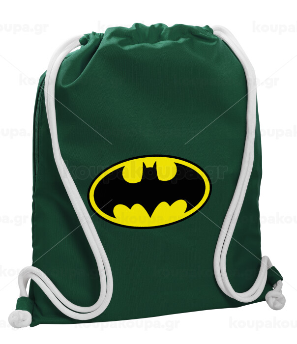 Batman, Backpack pouch GYMBAG BOTTLE GREEN, with pocket (40x48cm) & thick white cords