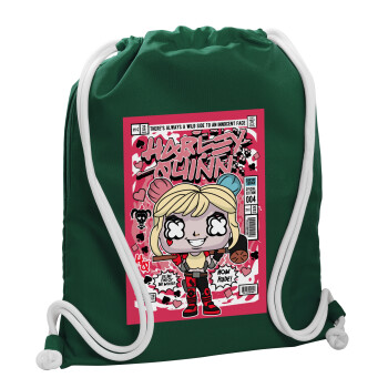 Harley Quinn (Χάρλεϊ Κουίν), Backpack pouch GYMBAG BOTTLE GREEN, with pocket (40x48cm) & thick white cords