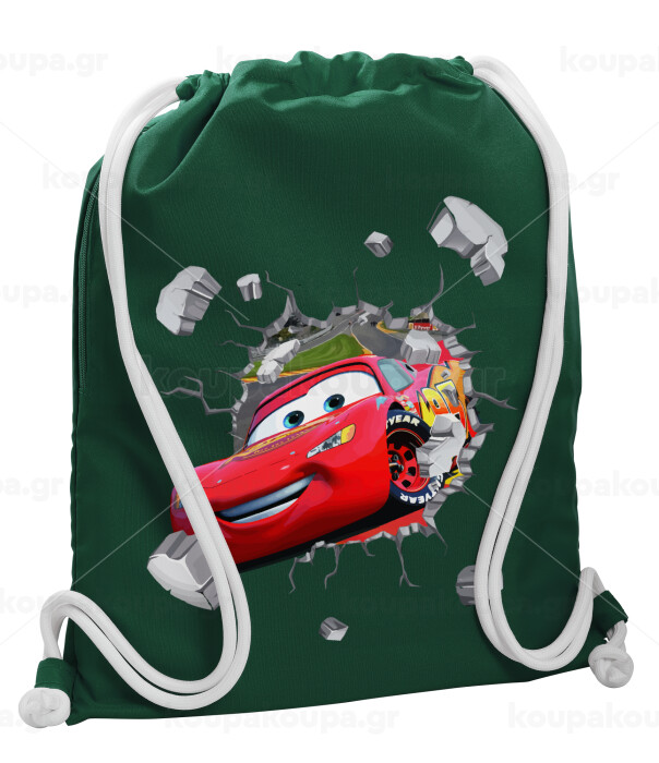 Brick McQueen, Backpack pouch GYMBAG BOTTLE GREEN, with pocket (40x48cm) & thick white cords