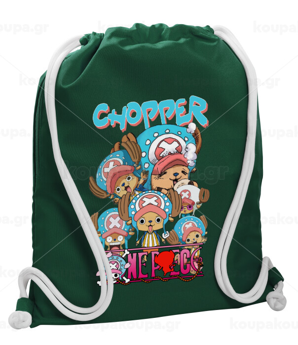 Chopper One Piece, Backpack pouch GYMBAG BOTTLE GREEN, with pocket (40x48cm) & thick white cords
