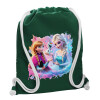 Elsa & Anna Princess, Backpack pouch GYMBAG BOTTLE GREEN, with pocket (40x48cm) & thick white cords