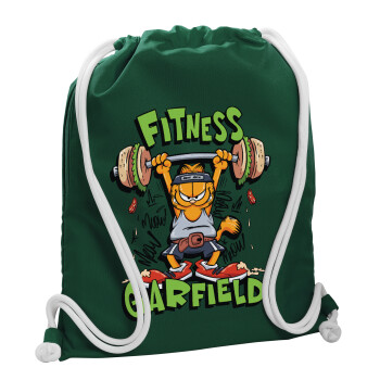 Garfield Fitness, Backpack pouch GYMBAG BOTTLE GREEN, with pocket (40x48cm) & thick white cords