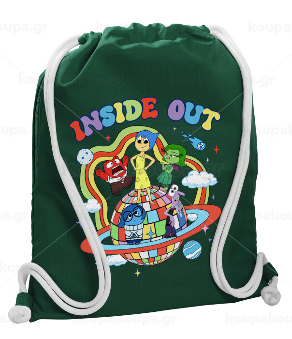 Inside Out, Backpack pouch GYMBAG BOTTLE GREEN, with pocket (40x48cm) & thick white cords