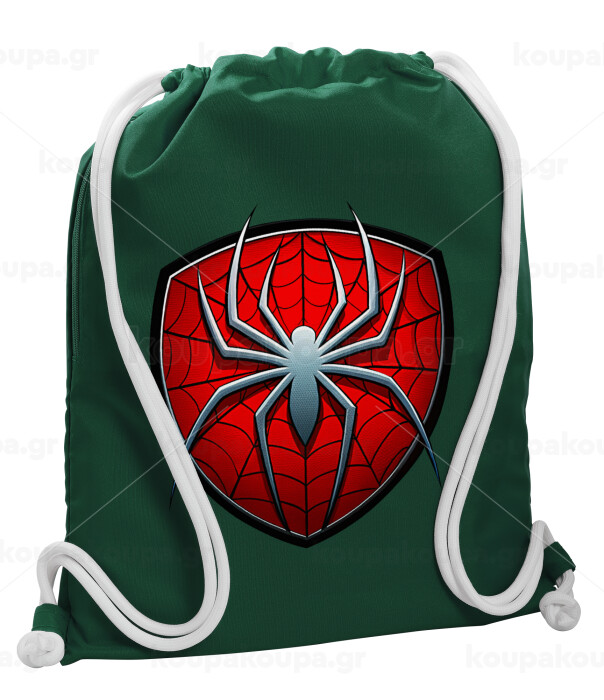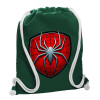 Spider-man, Backpack pouch GYMBAG BOTTLE GREEN, with pocket (40x48cm) & thick white cords