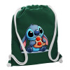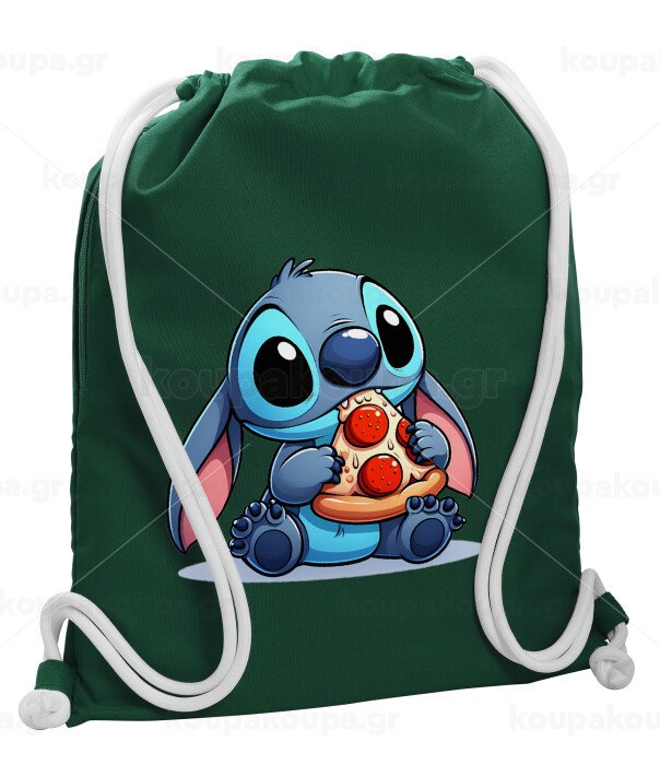 Stitch Pizza, Backpack pouch GYMBAG BOTTLE GREEN, with pocket (40x48cm) & thick white cords
