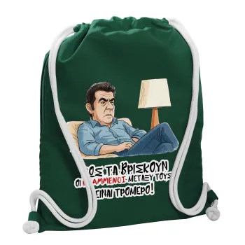 ΠΩΣ ΤΑ ΒΡΙΣΚΟΥΝ ΟΙ ΒΛΑ....ΝΟΙ ΜΕΤΑΞΥ ΤΟΥΣ, ΕΙΝΑΙ ΤΡΟΜΕΡΟ!!!, Backpack pouch GYMBAG BOTTLE GREEN, with pocket (40x48cm) & thick white cords