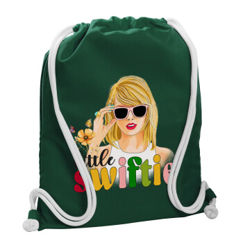 Little Swiftie, Backpack pouch GYMBAG BOTTLE GREEN, with pocket (40x48cm) & thick white cords