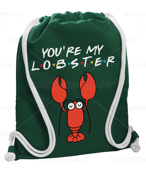 Friends you're my lobster, Backpack pouch GYMBAG BOTTLE GREEN, with pocket (40x48cm) & thick white cords