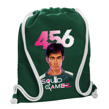 Squid game 456 Gi-Hun, Backpack pouch GYMBAG BOTTLE GREEN, with pocket (40x48cm) & thick white cords
