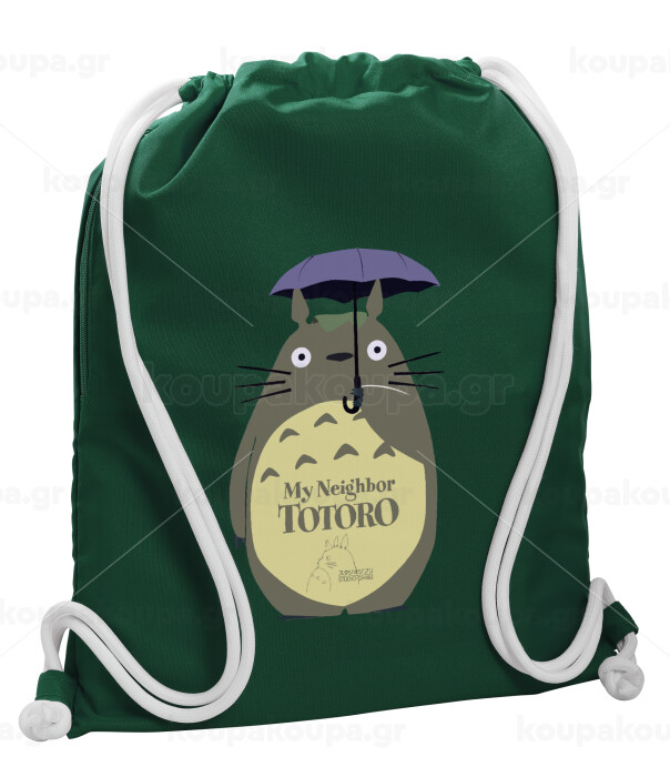 Totoro from My Neighbor Totoro, Backpack pouch GYMBAG BOTTLE GREEN, with pocket (40x48cm) & thick white cords