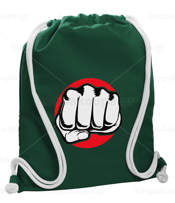 Punch, Backpack pouch GYMBAG BOTTLE GREEN, with pocket (40x48cm) & thick white cords