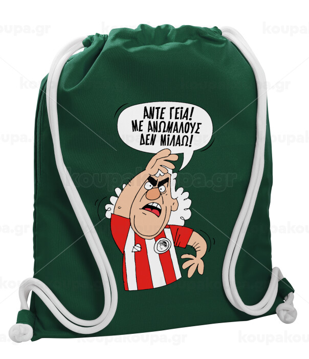 Τάκης, Άντε γεια, με ανώμαλους δεν μιλάω!, Backpack pouch GYMBAG BOTTLE GREEN, with pocket (40x48cm) & thick white cords