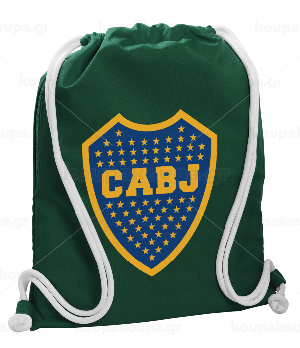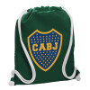 Club Atlético Boca Juniors, Backpack pouch GYMBAG BOTTLE GREEN, with pocket (40x48cm) & thick white cords