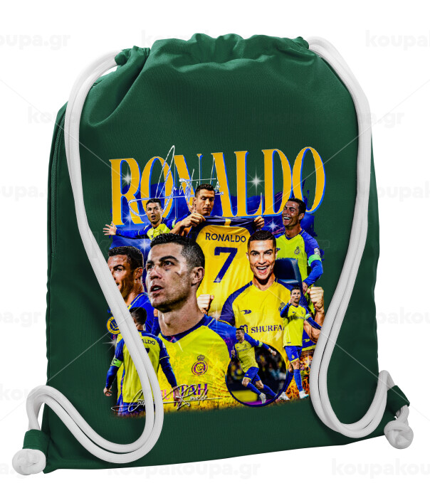 Cristiano Ronaldo Al Nassr, Backpack pouch GYMBAG BOTTLE GREEN, with pocket (40x48cm) & thick white cords