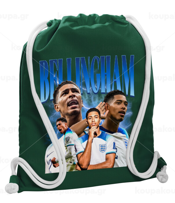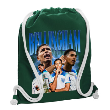 Jude Bellingham, Backpack pouch GYMBAG BOTTLE GREEN, with pocket (40x48cm) & thick white cords